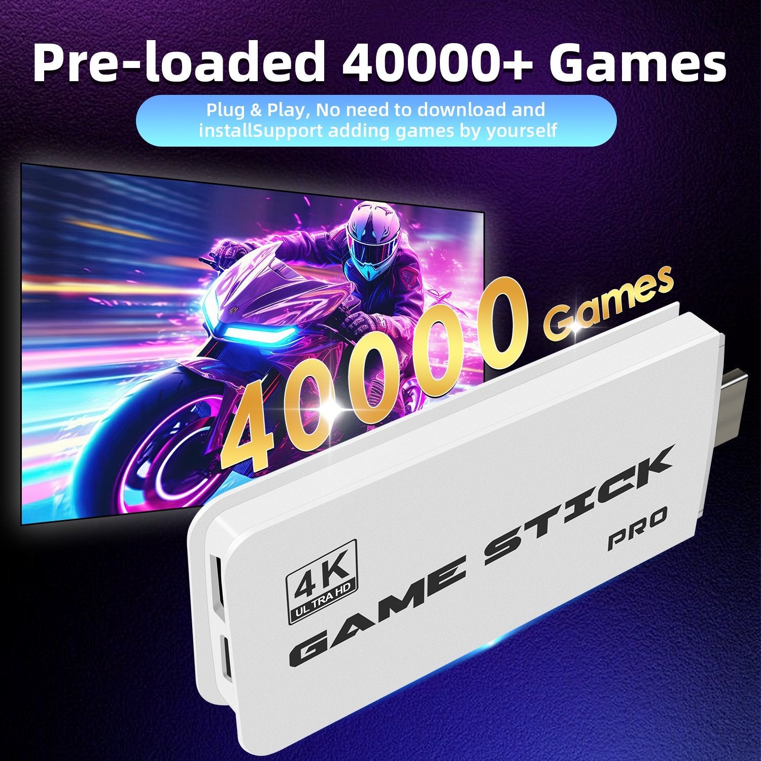 Geen gedoe met ingewikkelde installaties of rondslingerende kabels. Plug de stick simpelweg in de HDMI-poort van je TV, zet de draadloze controllers aan en begin direct met spelen. Geniet van de magie van vroeger in de haarscherpe 4K-kwaliteit van nu.